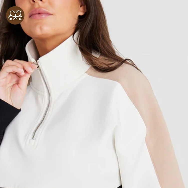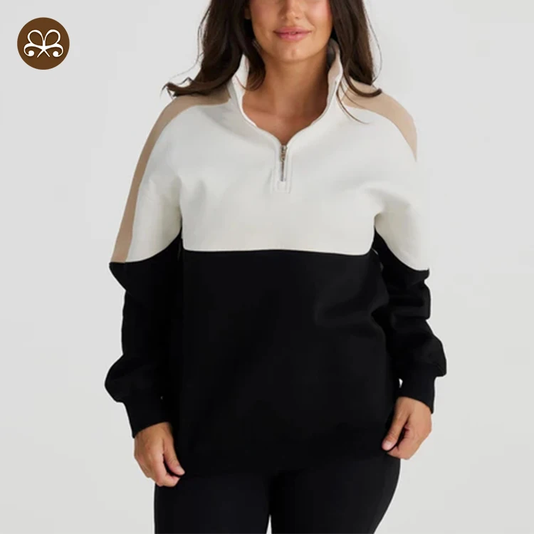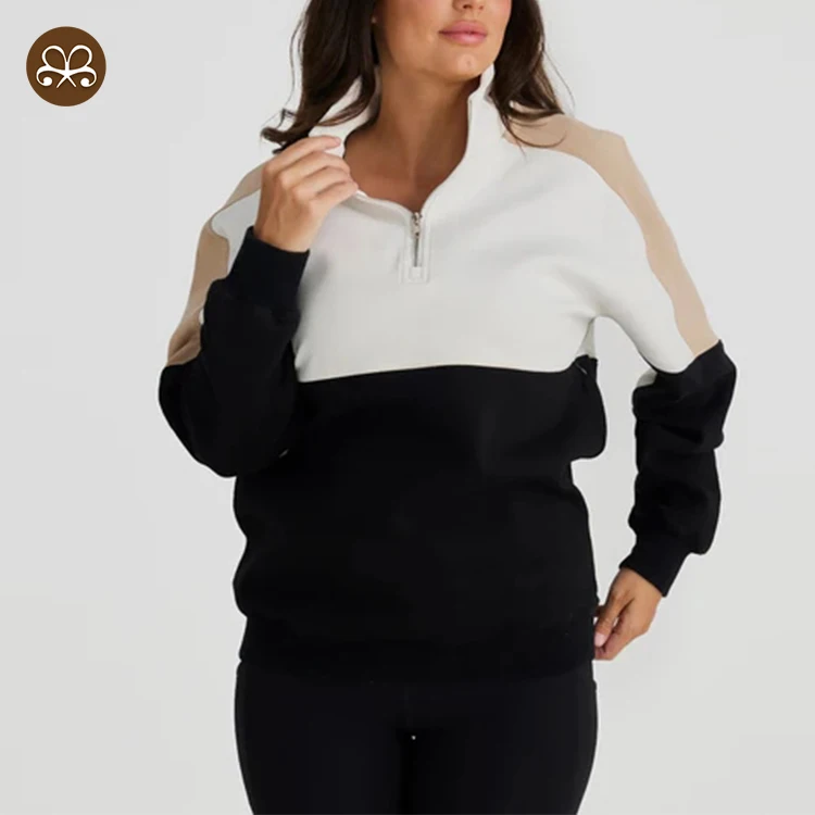 Custom Women Winter Sherpa Fleece Quarter Zip Color Block Nursing Sweater With Chest Zip